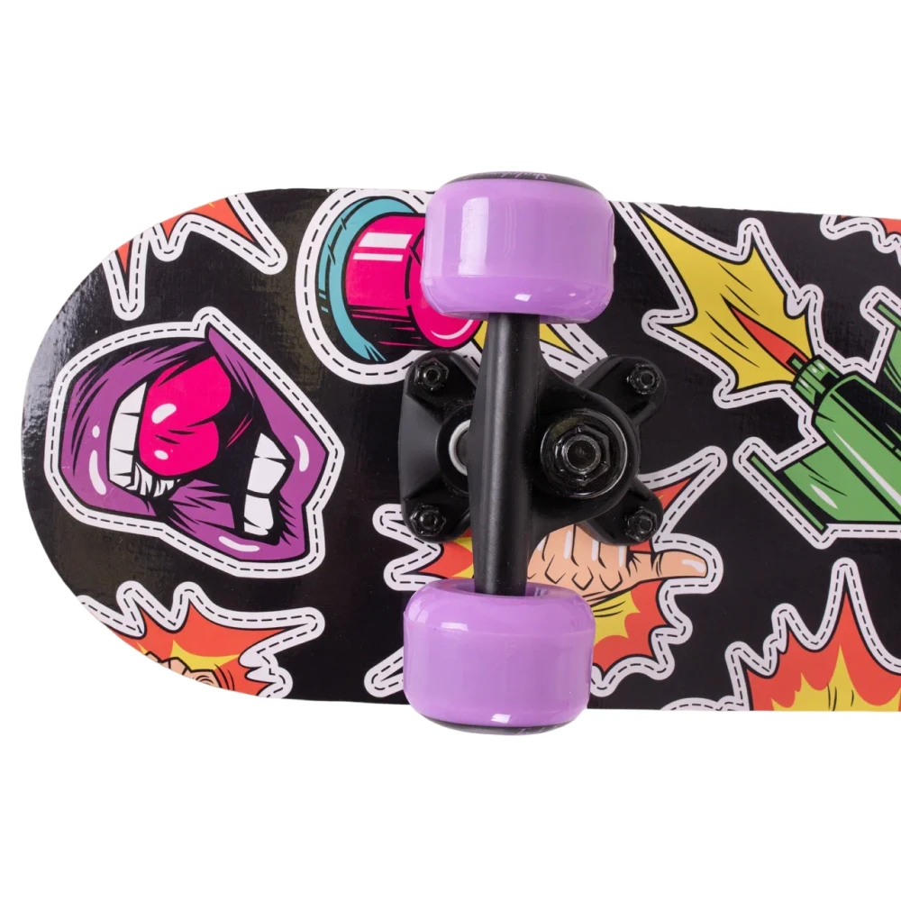 Скейтборд Tech Team Profi 2024 фиолетовый - это смесь классического стиля и современных технологий. Колеса из полиуретана размером 50x36 мм с жесткостью 85А обеспечивают стабильность и динамичность в движении. Дека, выполненная из 9 слоев высококачественного китайского клена, с размерами 24”х6”, обеспечивает уверенность в каждом движении. Черная шкурка 80AB на верхней части деки гарантирует отличное сцепление с ногой, а нижняя часть, украшенная ярким принтом в фиолетовых тонах, воплощает в себе дух свободы и бунтарства. Подшипники ABEC 5 обеспечивают плавное и быстрое движение. Двойной концевой загиб деки (Double Kick) позволяет легко выполнять сложные трюки. Этот скейтборд - ваш верный спутник в городских приключениях.