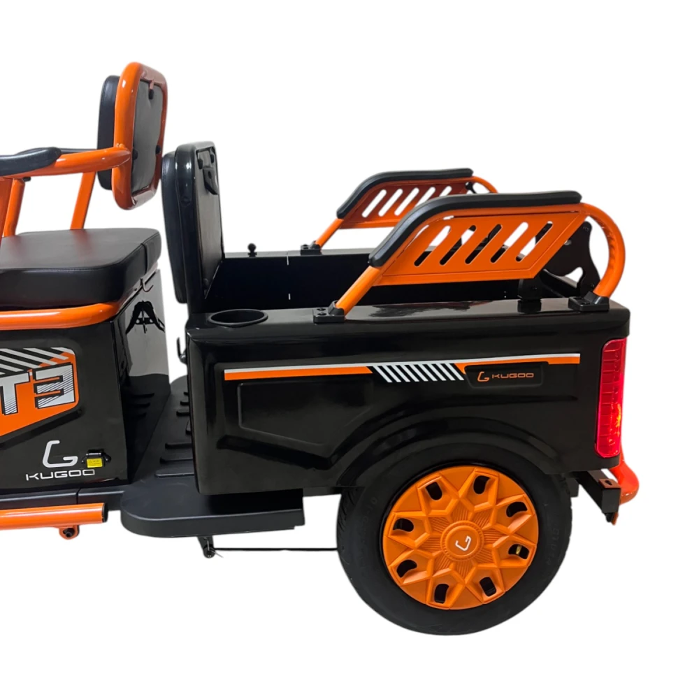 Kugoo T3 — флагманский трицикл с энергоэффективным мотором, премиум-подвеской и расширенной комплектацией. Это больше, чем транспорт — это комфорт и мобильность нового поколения.
